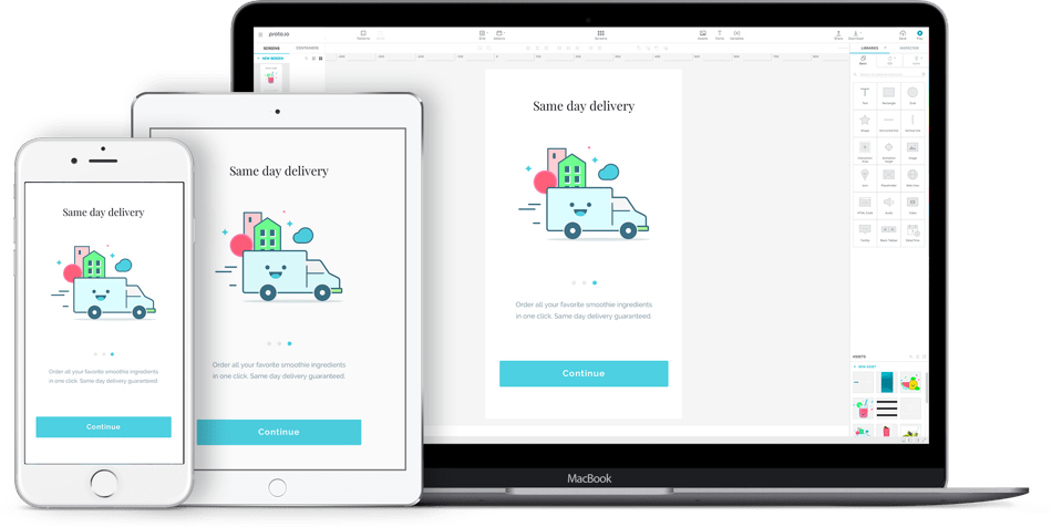 Create fully-interactive high-fidelity prototypes that look and work exactly like your app should. No coding required.